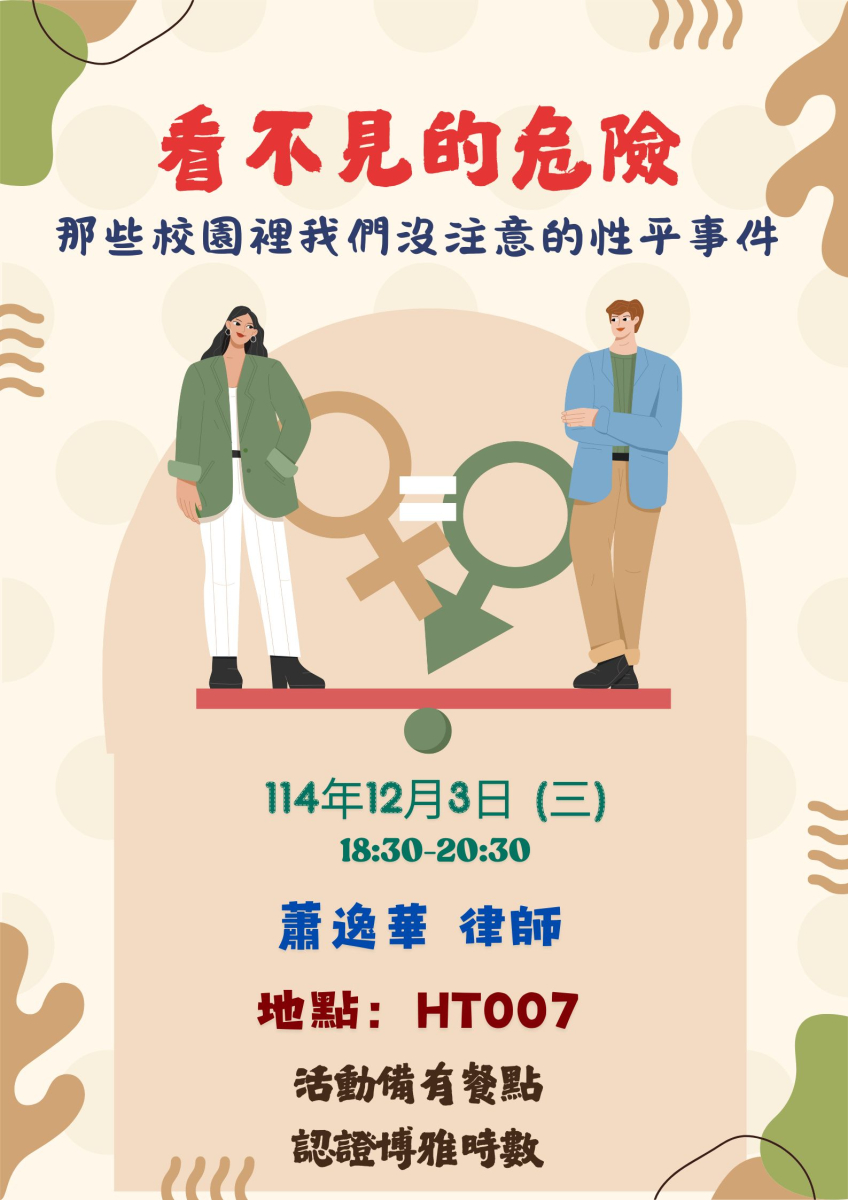 《看不見的危險:那些校園裡我們沒注意的性平事件》品德教育宣導推廣活動,歡迎同學踴躍報名參加