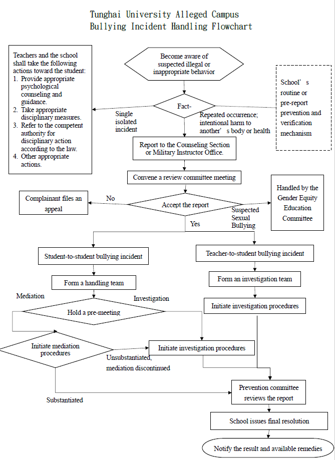 東海大學疑似校園霸凌事件處理流程